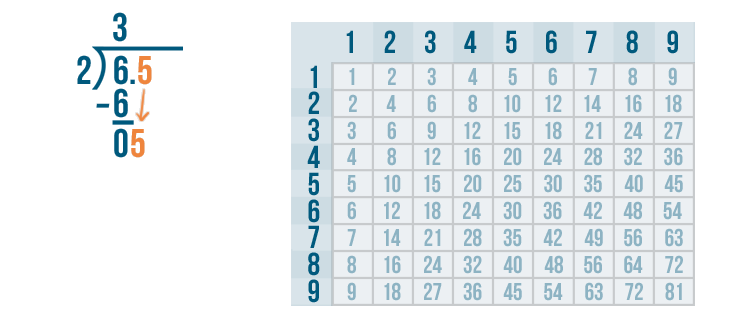 In this problem, we divided a decimal number: 6.5. This means our quotient, or answer, will have a decimal point.