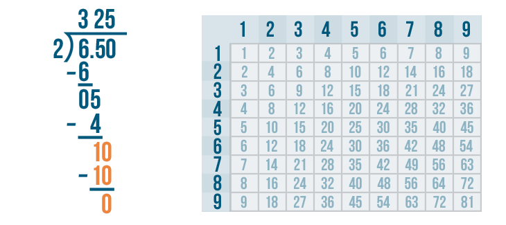To solve our problem, we'll use a familiar tool: the times table.