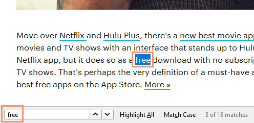 If you know exactly what you're looking for, you may not have to skim the page. Just hold down Ctrl (or Command if you're using a Mac) and then press F to open up the Find toolbar. You can then type the word or phrase you're looking for to skip to that part of the page. This is especially helpful for long articles.