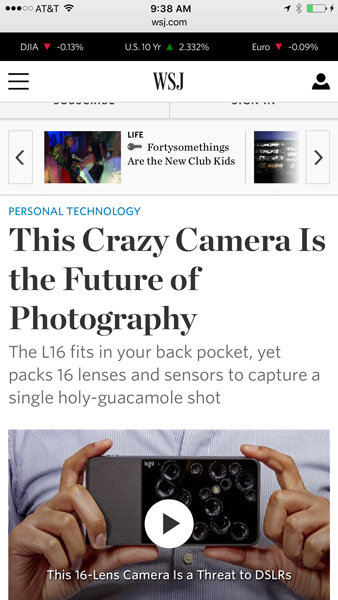 The example below shows the same webpage we looked at above, except it's viewed on an iPhone. The header is now much smaller to make room for the main content (although the mobile site will require a lot more scrolling to read the article).