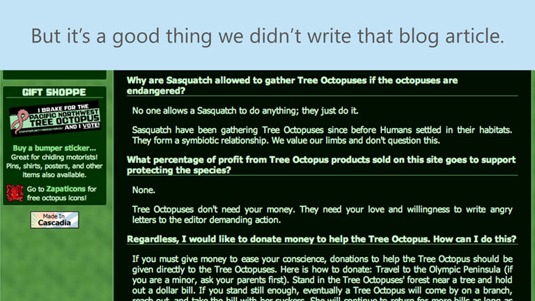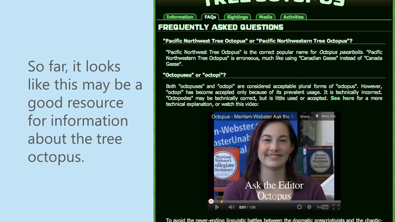 Click the arrows in the slideshow below to see an example of how you can judge a website.