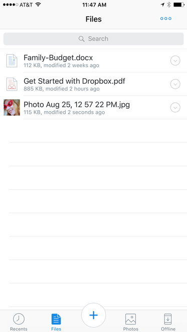 Available for iOS and Android, the Dropbox mobile app allows you to view, upload, and download files with Dropbox on your mobile device. It also features the ability to use your device's camera to scan documents.