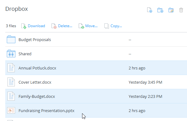 Once you start adding files to Dropbox, you can use folders to group and organize them. Folders in Dropbox work just like folders on your computer.