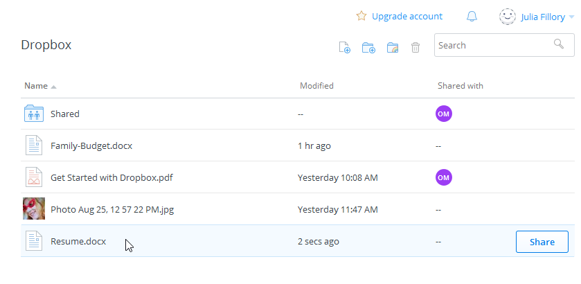 Once you upload a file, no matter what type it is, you'll be able to manage, organize, share, and access it from anywhere. Because your Dropbox files are synced across your devices, you'll always see the most recent version of a file.