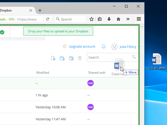 It's easy to upload files from your computer onto Dropbox. If you're using Dropbox's website or their desktop app, you can even upload entire folders.