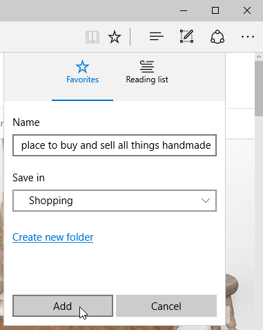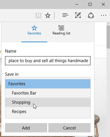 - A dialog box will appear. To choose a folder for your favorite, click the drop-down menu below Save in, then select a folder.