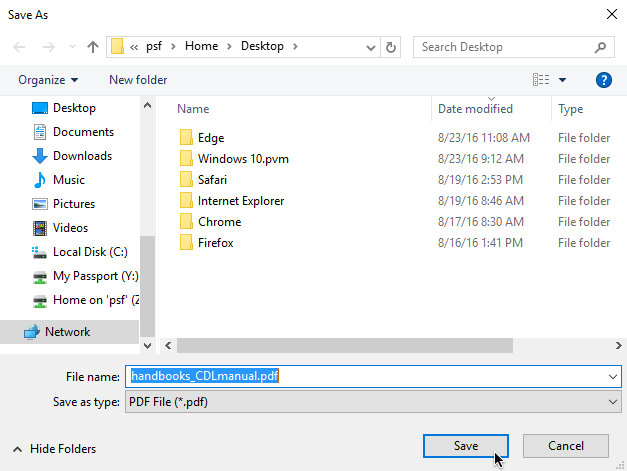 - A dialog box will appear. Select the location where you want to save the file, enter a file name, and click Save.