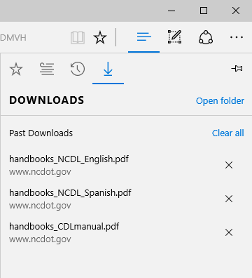 - The Downloads tab will appear with a list of all of your downloaded files. From here, you can open previously downloaded files and clear your list of downloads.