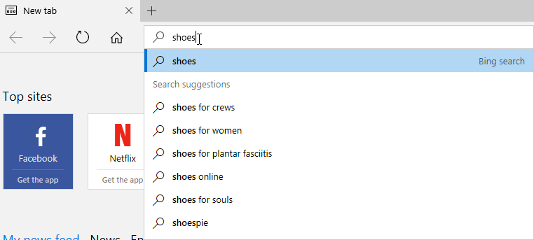 - To conduct a web search, type a search term into the address bar. A list of possible search terms will appear. Press Enter to search or select a suggestion.
