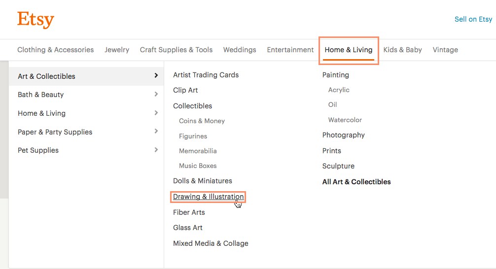 If you're not quite sure exactly what you want to buy, you can browse Etsy using its categories and collections. At the top of Etsy's homepage, you'll find a menu bar containing various categories of items.