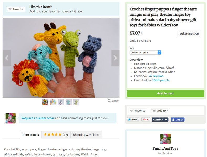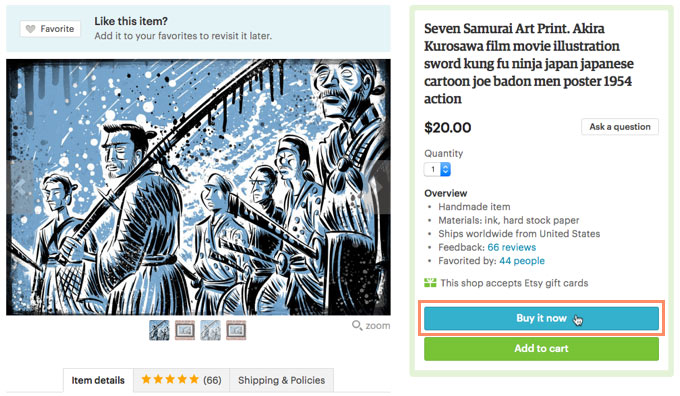 Etsy makes buying things from sellers easy, with a streamlined process and checkout system.