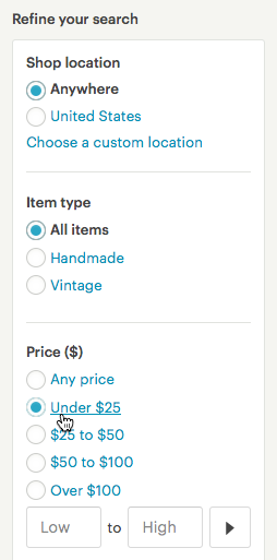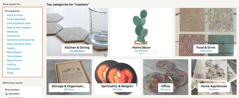 A results page will appear, displaying a list of results related to your search terms. Etsy offers several ways to sort and narrow down your searches.