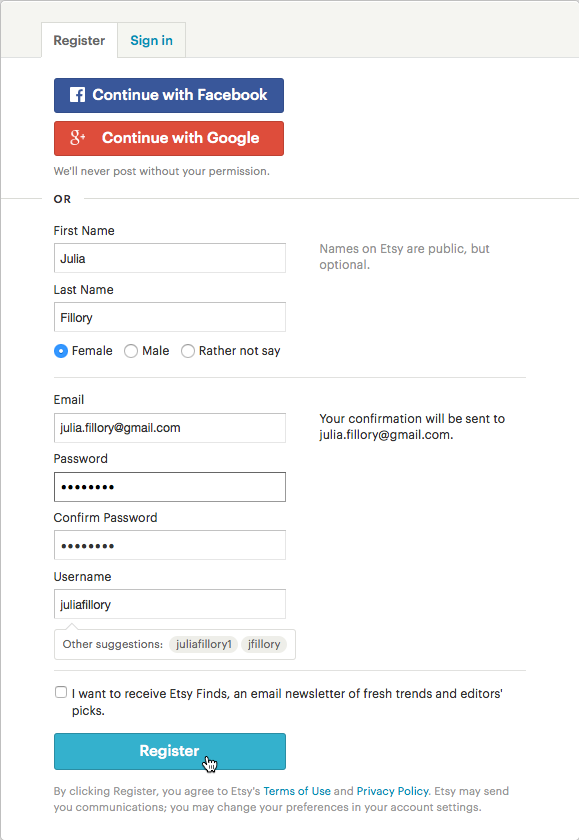 Before getting started with buying or selling, you'll need to create your own Etsy account.
