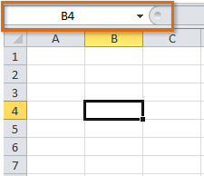 The name box tells you the location or the name of a selected cell. In the image below, cell B4 is in the name box. Note how cell B4 is where column B and row 4 intersect.