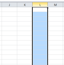 A column is a group of cells that runs from the top of the page to the bottom. In Excel, columns are identified by letters. Column L is selected here.