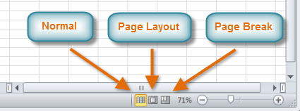There are three ways to view a spreadsheet. Click a page view button to select it.
