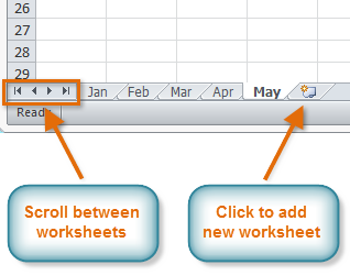 Click the buttons in the interactive below for an overview of how to navigate an Excel workbook.