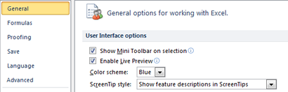 Here, you can change various Excel options. For example, you can control the spelling and grammar check settings, AutoRecover settings, and Language preferences.