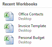 Opening a workbookIf you have opened the existing workbook recently, it may be easier to choose Recent from the File tab instead of Open to search for your workbook.