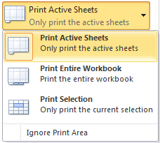 Choose whether to print the active sheets, entire workbook, or a selection of cells.