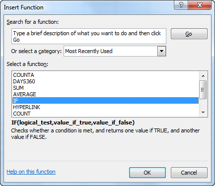 The Insert Function command allows you to easily search for a command by entering a description of what you are looking for.
