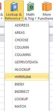 The Lookup & Reference category contains functions that will return results for finding and referencing. For example, you can add a hyperlink (HYPERLINK) to a cell or return the value of a particular row and column intersection (INDEX).