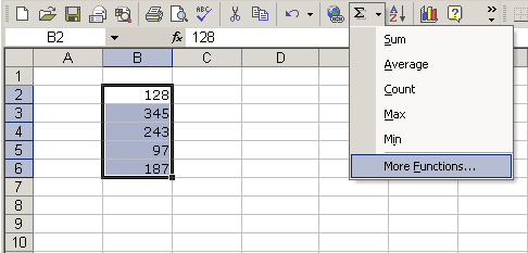 - On the Standard toolbar, click the drop-down part of the AutoSum button.