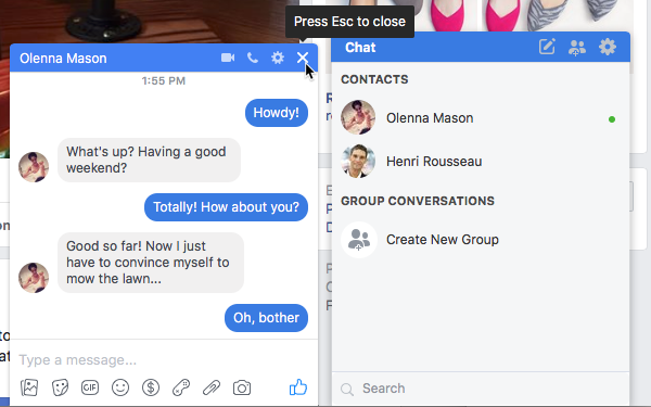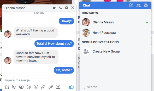 The Messenger is where you'll read all of your private communication on Facebook, including your chat conversation history. Whenever you receive a new message or chat, it will appear in the Messenger. From here, it's easy to read, manage, and delete your chats.