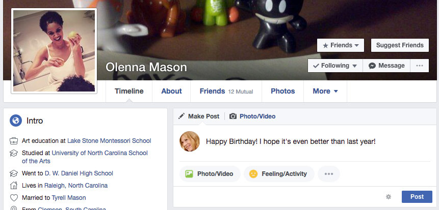 Note that you cannot control privacy settings for the things you share on your friends' Timelines. For this reason, you should think carefully before posting anything that might be considered inappropriate or embarrassing. If you don't want other people to see your post, you can send your friend a private message instead.