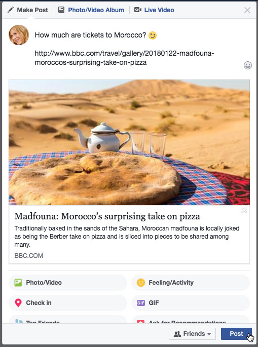 If you want to share something with a friend, you can post it directly on that friend's Timeline. To do this, simply use the Publisher located on your friend's Timeline.