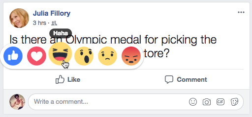 Instead of liking a post, you can respond with different illustrated emoticons, called reactions on Facebook. To do this, hover your mouse over the Like button, then select the desired reaction. If you're using a mobile device, press and hold the Like button to choose a reaction.