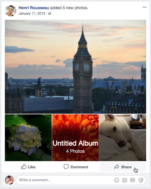 Sharing isn't limited to the things you post on Facebook. You can also like, comment, and reshare the other posts and stories your friends share on Facebook.