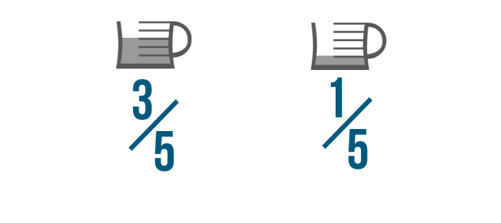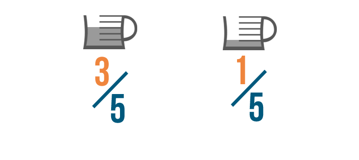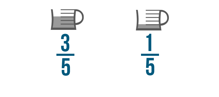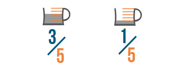 Let's imagine that a cake recipe tells you to add 3/5 of a cup of oil to the batter.