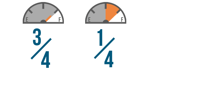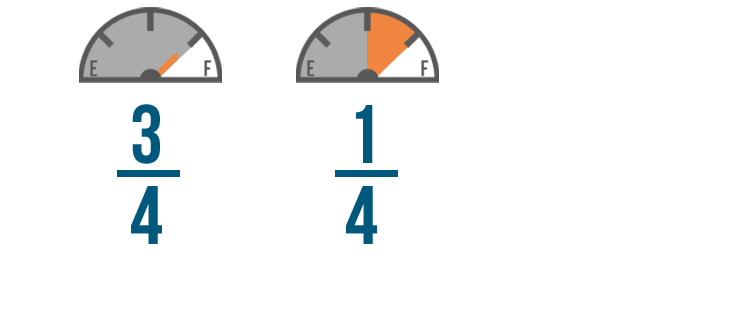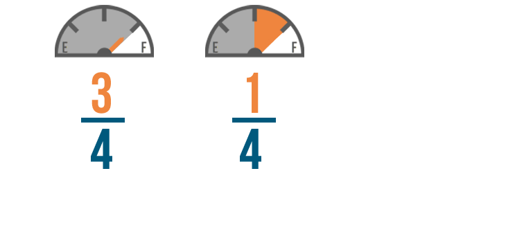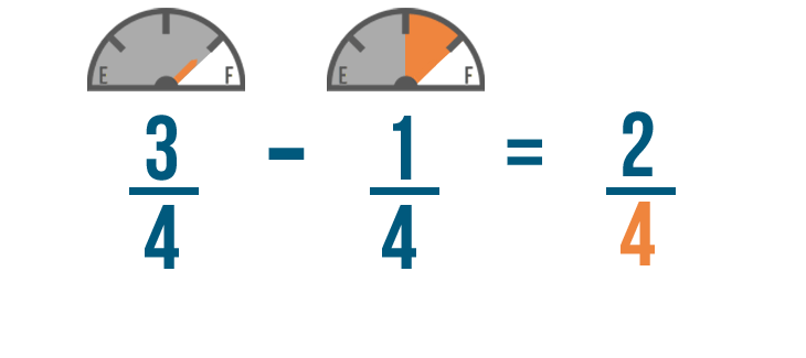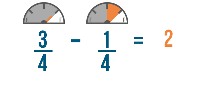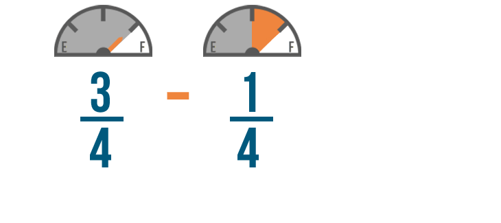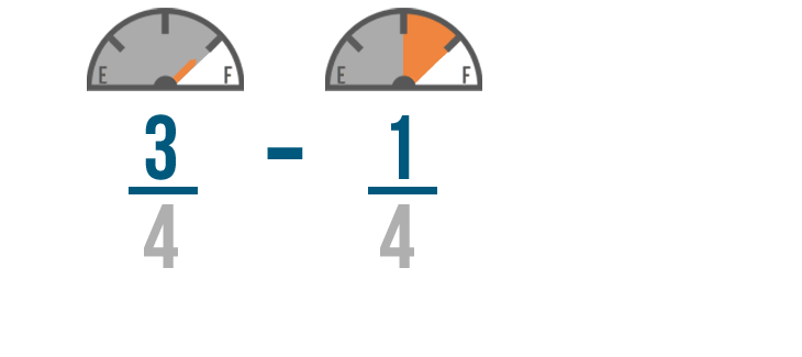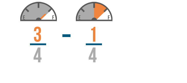 Let's use our earlier example and subtract 1/4 of a tank of gas from 3/4 of a tank.