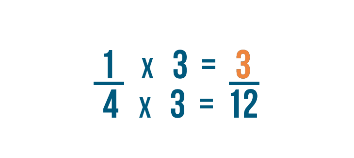Our old denominator was 3. We multiplied it by 4 to get 12.