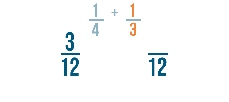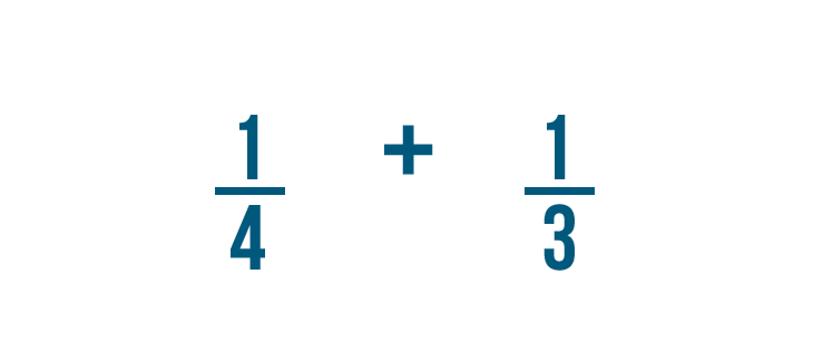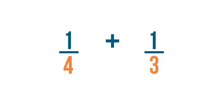 On the last page, we learned how to add fractions that have the same denominator, like 1/4 and 3/4. But what if you needed to add fractions with different denominators? For example, our cake recipe might say to blend 1/4 cup of milk in slowly and then dump in another 1/3 of a cup.