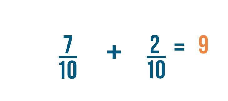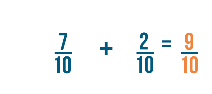 7 plus 2 equals 9, so we'll write that to the right of the numerators.