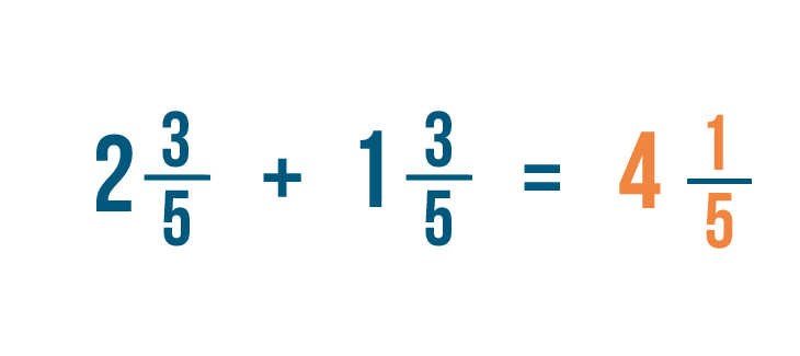 Let's add these two mixed numbers: 2 3/5 and 1 3/5.