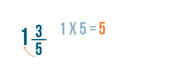 First, we'll multiply the whole number by the denominator. 1 x 5 = 5.