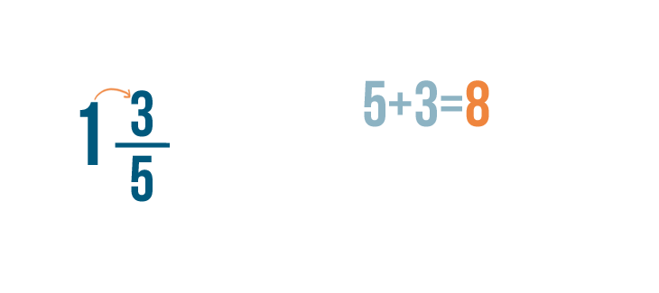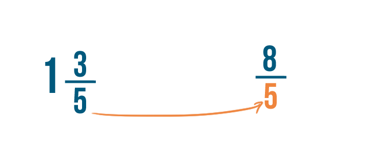 Just like last time, the denominator remains the same. So we've changed 1 3/5 to 8/5.