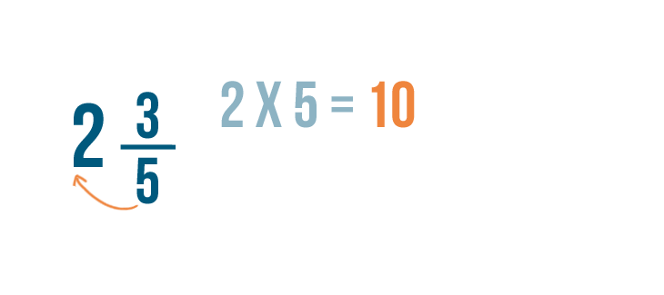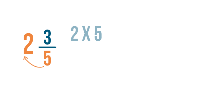 As you learned in Lesson 2, we'll multiply the whole number, 2, by the bottom number, 5.
