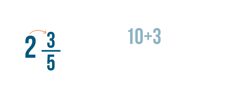 We'll need to convert these mixed numbers to improper fractions. Let's start with 2 3/5.