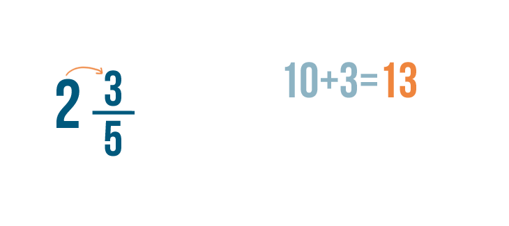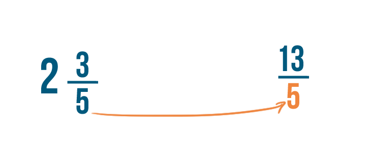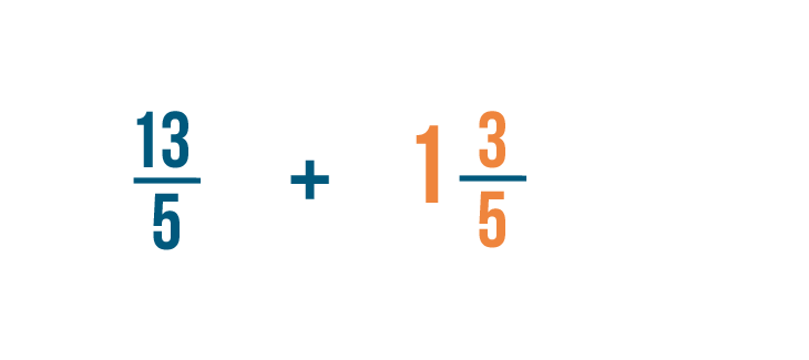 Just like when you add fractions, the denominator stays the same. Our improper fraction is 13/5.