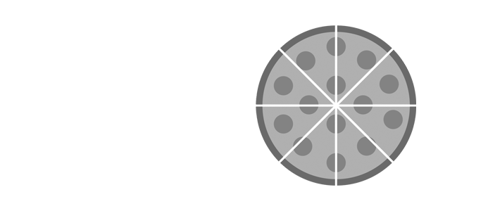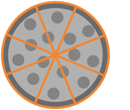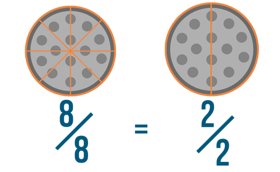 So if you had eight slices of pizza out of eight total, you'd have one whole pizza.