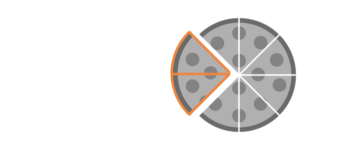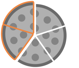 The top number, or numerator, refers to a certain number of those parts. It lets us know how much we're talking about. Since we're talking about one slice of pizza, our numerator is 1.