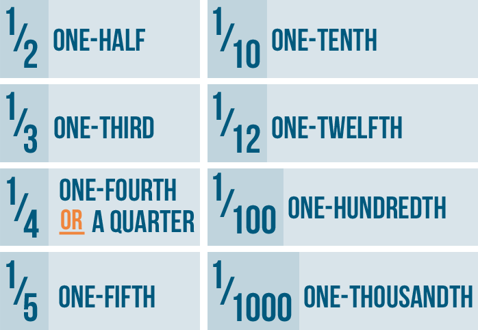 When we read or talk about fractions, we use special numbers called ordinal numbers. A good way to remember this is that many of them are the same numbers you use when you're putting things in order: third, fourth, fifth, and so on.