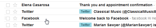 You can create filters that sort your email by various characteristics, including specific senders or recipients, keywords in the subject or body, and attachments. For example, let's say you want to make sure emails from Twitter don't get lost among the rest of your messages. You could create a filter that sorts every email received from Twitter, as shown below.