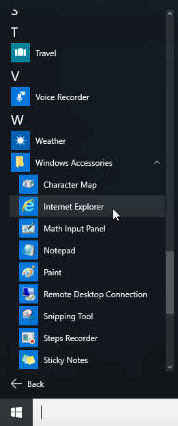 Even though Microsoft Edge is the default browser, you can still access IE 11. Simply click the Start button > All Apps > Windows Accessories > Internet Explorer.