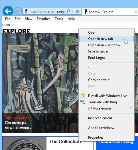 - Right-click the link you want to open, then select Open in new tab from the drop-down menu. You can also hover your mouse over the link and press the scroll wheel on your mouse.