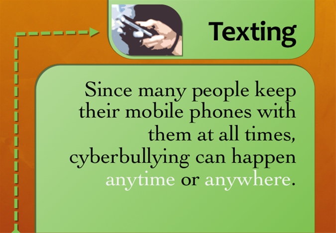Cyberbullying is bullying that occurs online, often through instant messaging, text messaging, email, and social networks.